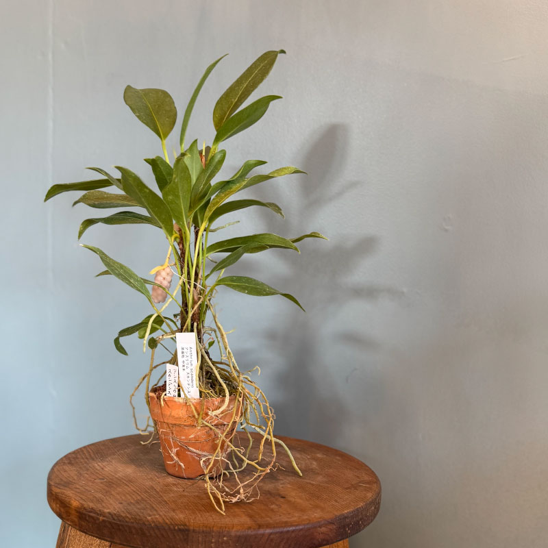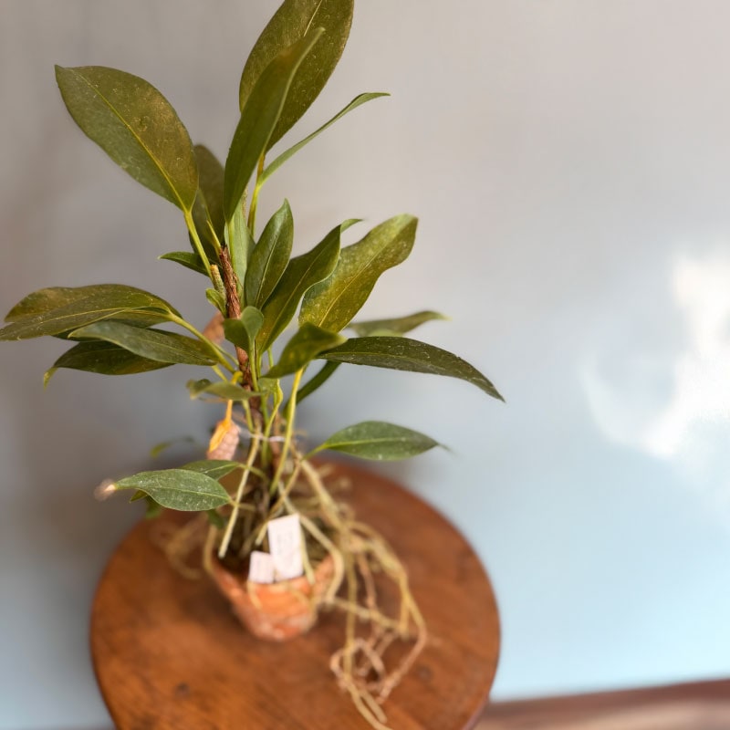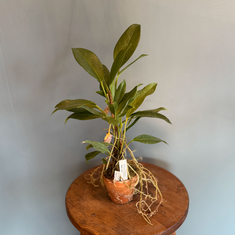 - つる性のアンスリウムです。しっかりとした幹が力強く、たくさん伸びる細い根も生き生きと力強い印象です。加湿を避ける水やりで管理してください。